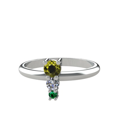 Peridot, pırlanta ve yeşil kuvars 14 ayar beyaz altın yüzük (0.11 karat)