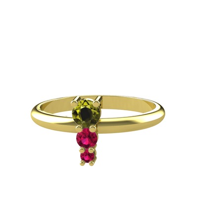 Peridot ve rodolit garnet 18 ayar altın yüzük