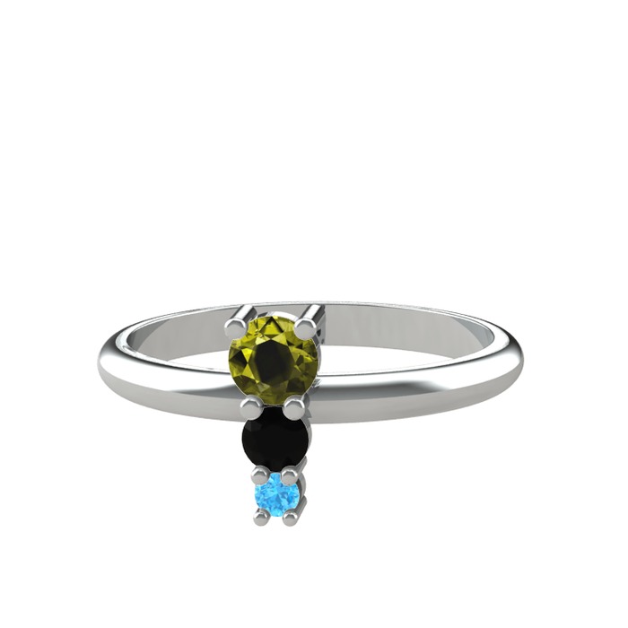 Peridot, siyah zirkon ve akuamarin 8 ayar beyaz altın yüzük