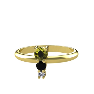 Peridot, siyah zirkon ve pırlanta 925 ayar altın kaplama gümüş yüzük (0.036 karat)