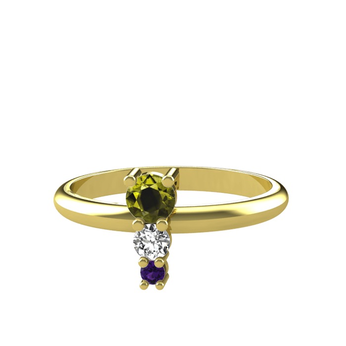Peridot, swarovski ve ametist 14 ayar altın yüzük