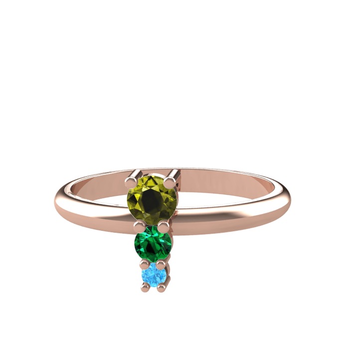 Peridot, yeşil kuvars ve akuamarin 8 ayar rose altın yüzük