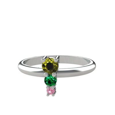 Peridot, yeşil kuvars ve pembe kuvars 8 ayar beyaz altın yüzük