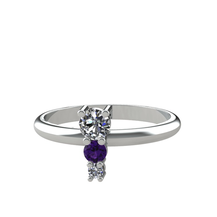 Pırlanta ve ametist 14 ayar beyaz altın yüzük (0.216 karat)