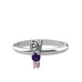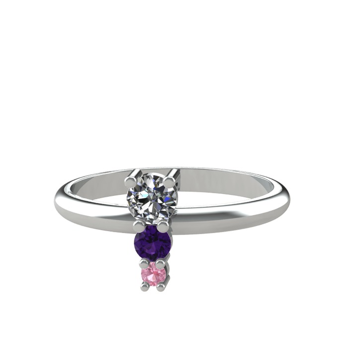 Pırlanta, ametist ve pembe kuvars 8 ayar beyaz altın yüzük (0.18 karat)