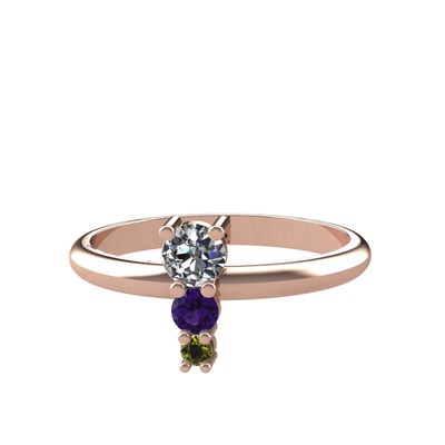 Pırlanta, ametist ve peridot 18 ayar rose altın yüzük (0.18 karat)