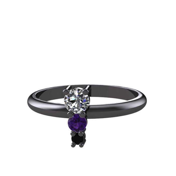 Pırlanta, ametist ve siyah zirkon 925 ayar siyah rodyum kaplama gümüş yüzük (0.18 karat)