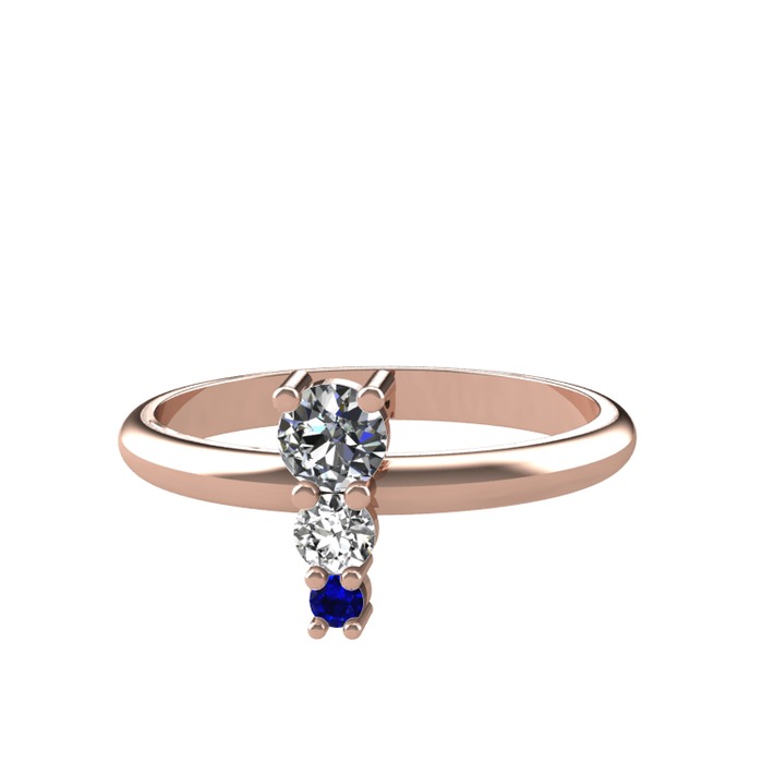 Pırlanta, beyaz zirkon ve lab safir 18 ayar rose altın yüzük (0.18 karat)