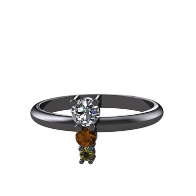 Pırlanta, dumanlı kuvars ve peridot 925 ayar siyah rodyum kaplama gümüş yüzük (0.18 karat)