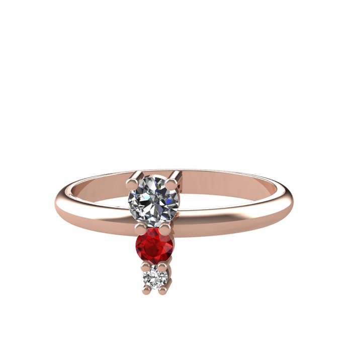 Pırlanta, garnet ve swarovski 8 ayar rose altın yüzük (0.18 karat)