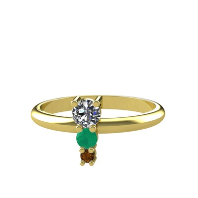 Pırlanta, kök zümrüt ve dumanlı kuvars 925 ayar altın kaplama gümüş yüzük (0.18 karat)