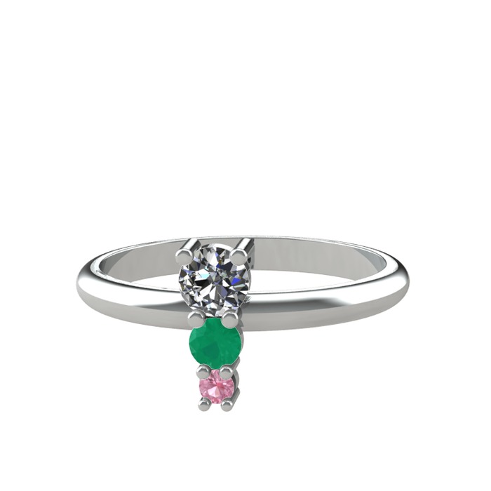 Pırlanta, kök zümrüt ve pembe kuvars 8 ayar beyaz altın yüzük (0.18 karat)