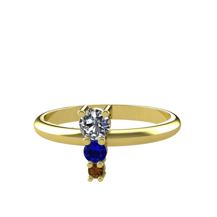 Pırlanta, lab safir ve dumanlı kuvars 8 ayar altın yüzük (0.18 karat)