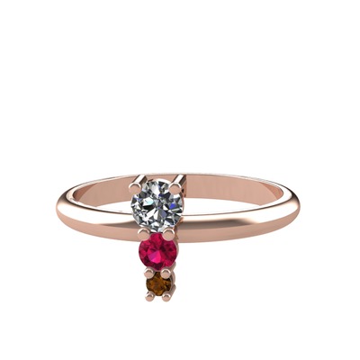 Pırlanta, rodolit garnet ve dumanlı kuvars 14 ayar rose altın yüzük (0.18 karat)