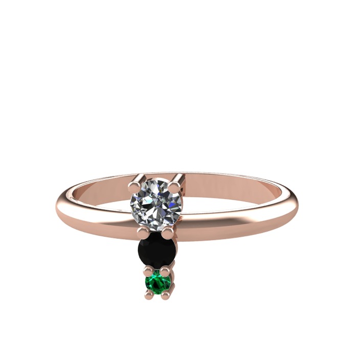 Pırlanta, siyah zirkon ve yeşil kuvars 14 ayar rose altın yüzük (0.18 karat)