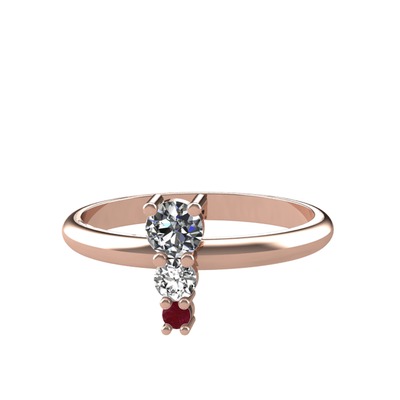 Pırlanta, swarovski ve kök yakut 14 ayar rose altın yüzük (0.18 karat)