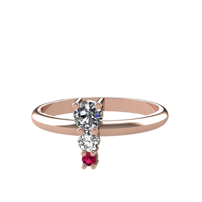 Pırlanta, swarovski ve rodolit garnet 8 ayar rose altın yüzük (0.18 karat)