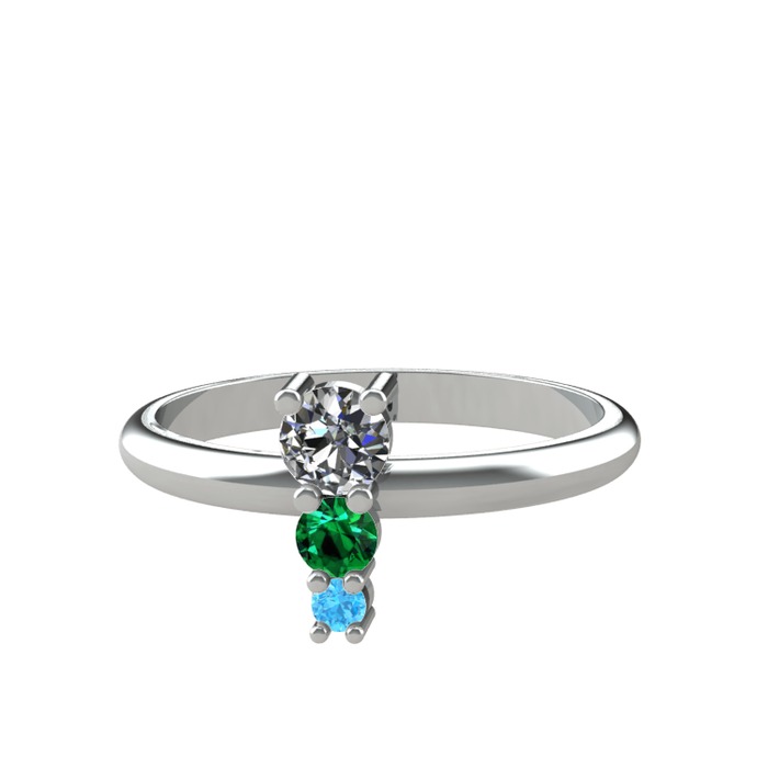 Pırlanta, yeşil kuvars ve akuamarin 14 ayar beyaz altın yüzük (0.18 karat)