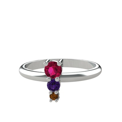 Rodolit garnet, ametist ve dumanlı kuvars 14 ayar beyaz altın yüzük