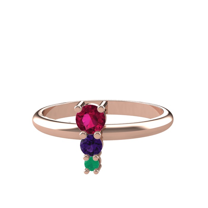 Rodolit garnet, ametist ve kök zümrüt 925 ayar rose altın kaplama gümüş yüzük