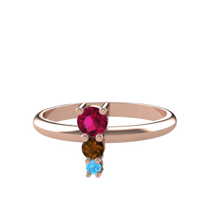Rodolit garnet, dumanlı kuvars ve akuamarin 8 ayar rose altın yüzük