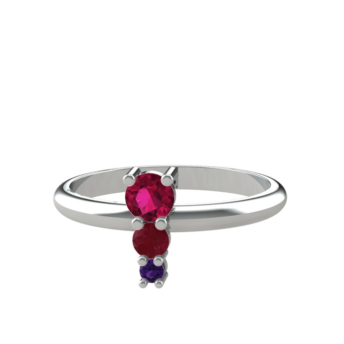 Rodolit garnet, kök yakut ve ametist 14 ayar beyaz altın yüzük