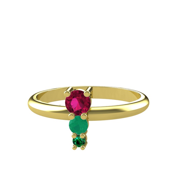Rodolit garnet, kök zümrüt ve yeşil kuvars 14 ayar altın yüzük