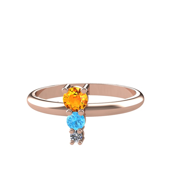 Sitrin, akuamarin ve pırlanta 14 ayar rose altın yüzük (0.036 karat)