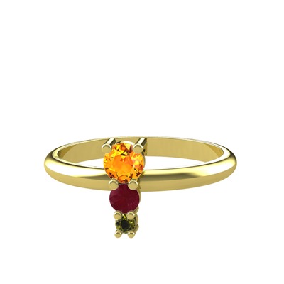 Sitrin, kök yakut ve peridot 925 ayar altın kaplama gümüş yüzük