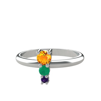 Sitrin, kök zümrüt ve ametist 14 ayar beyaz altın yüzük