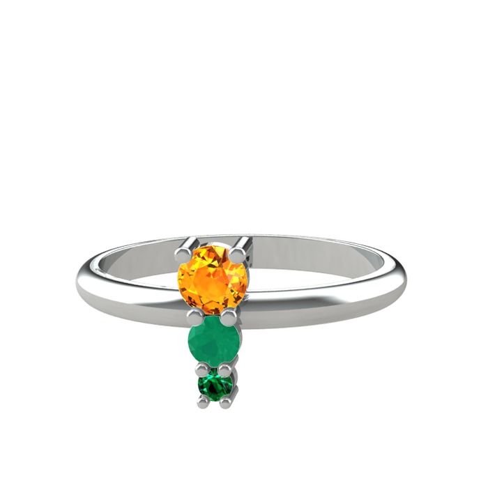 Sitrin, kök zümrüt ve yeşil kuvars 925 ayar gümüş yüzük