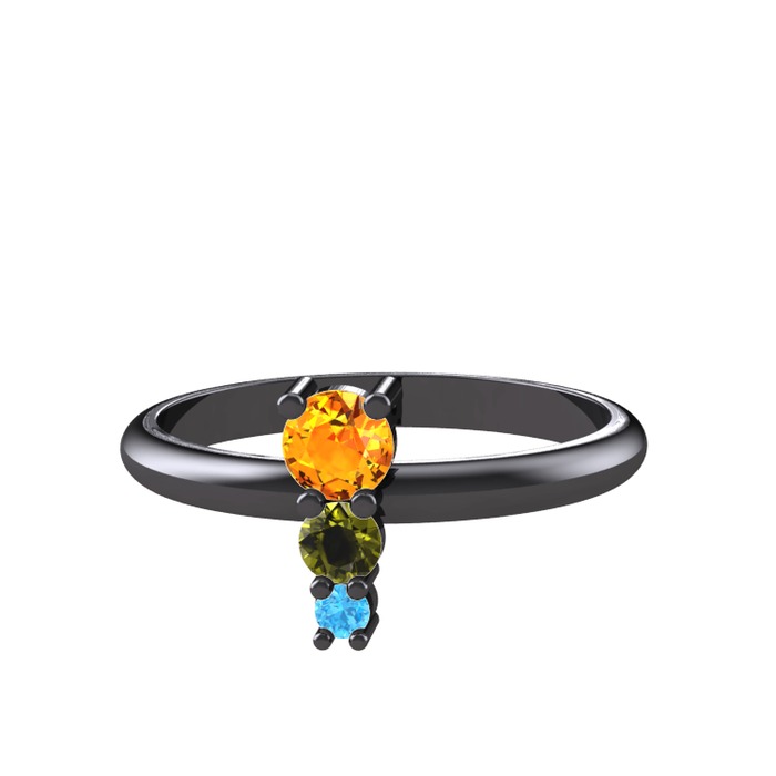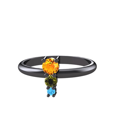 Sitrin, peridot ve akuamarin 925 ayar siyah rodyum kaplama gümüş yüzük