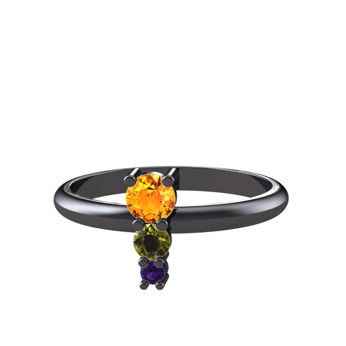 Sitrin, peridot ve ametist 925 ayar siyah rodyum kaplama gümüş yüzük
