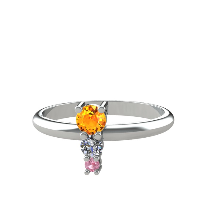 Sitrin, pırlanta ve pembe kuvars 925 ayar gümüş yüzük (0.11 karat)
