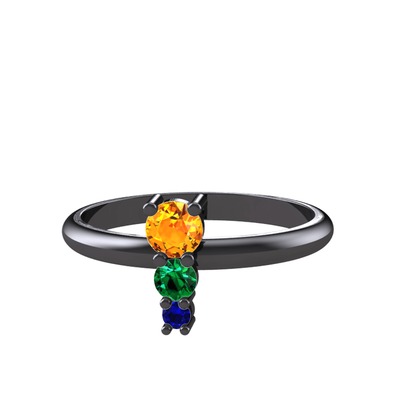 Sitrin, yeşil kuvars ve lab safir 925 ayar siyah rodyum kaplama gümüş yüzük
