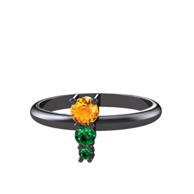 Sitrin ve yeşil kuvars 925 ayar siyah rodyum kaplama gümüş yüzük