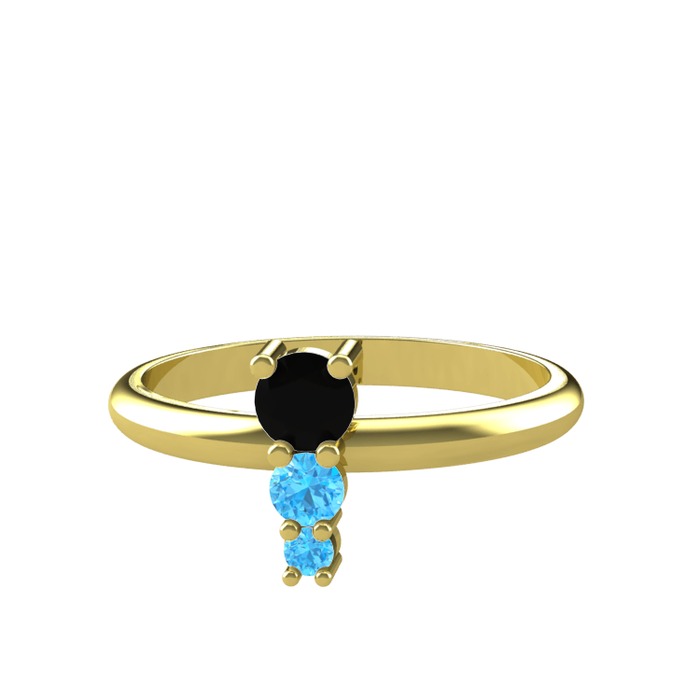 Siyah zirkon ve akuamarin 14 ayar altın yüzük