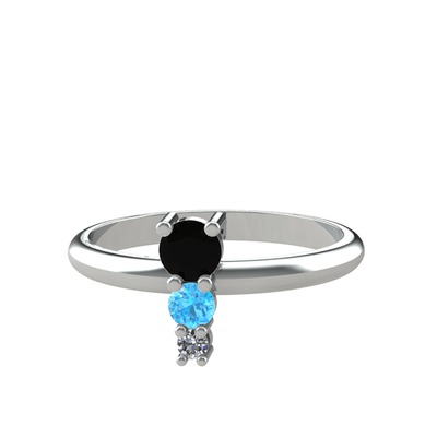 Siyah zirkon, akuamarin ve pırlanta 18 ayar beyaz altın yüzük (0.036 karat)