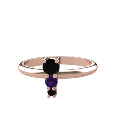Siyah zirkon ve ametist 18 ayar rose altın yüzük