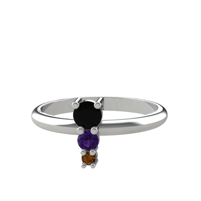 Siyah zirkon, ametist ve dumanlı kuvars 18 ayar beyaz altın yüzük