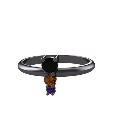 Siyah zirkon, dumanlı kuvars ve ametist 925 ayar siyah rodyum kaplama gümüş yüzük