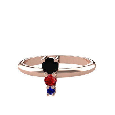 Siyah zirkon, garnet ve lab safir 8 ayar rose altın yüzük