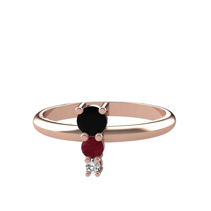 Siyah zirkon, kök yakut ve swarovski 925 ayar rose altın kaplama gümüş yüzük