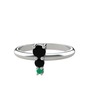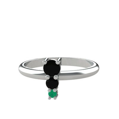 Siyah zirkon ve kök zümrüt 14 ayar beyaz altın yüzük