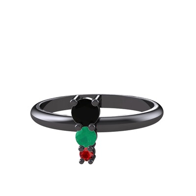 Siyah zirkon, kök zümrüt ve garnet 925 ayar siyah rodyum kaplama gümüş yüzük