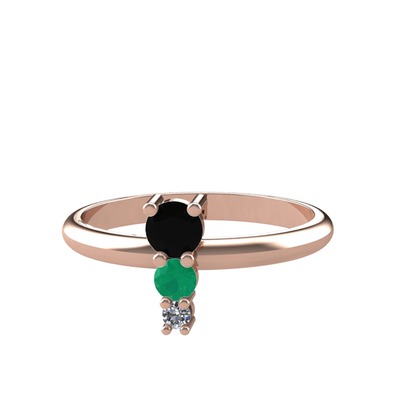 Siyah zirkon, kök zümrüt ve pırlanta 8 ayar rose altın yüzük (0.036 karat)