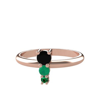 Siyah zirkon, kök zümrüt ve yeşil kuvars 18 ayar rose altın yüzük