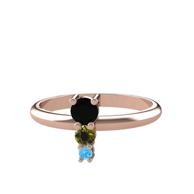 Siyah zirkon, peridot ve akuamarin 14 ayar rose altın yüzük