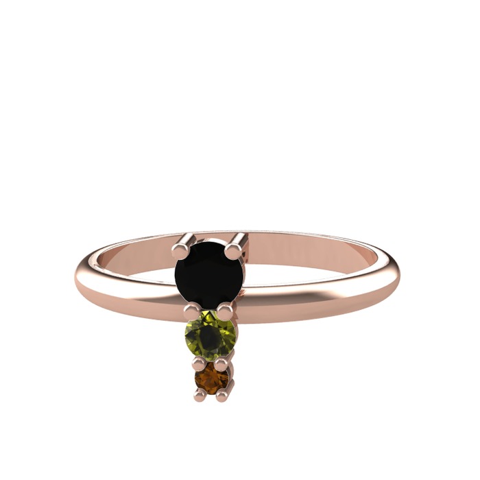 Siyah zirkon, peridot ve dumanlı kuvars 8 ayar rose altın yüzük