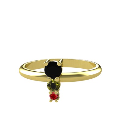 Siyah zirkon, peridot ve garnet 925 ayar altın kaplama gümüş yüzük
